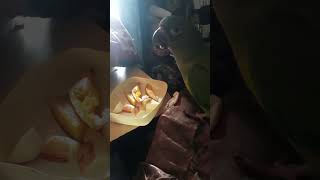 a alimentação das jandaias são frutas ,legumes e algumas sementes #Denga comendo