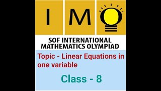 Class-8 Maths Olympiad | L-3 Linear Equations in One Variable | SOF IMO Class-8 Chapter- 2 #imo #sof