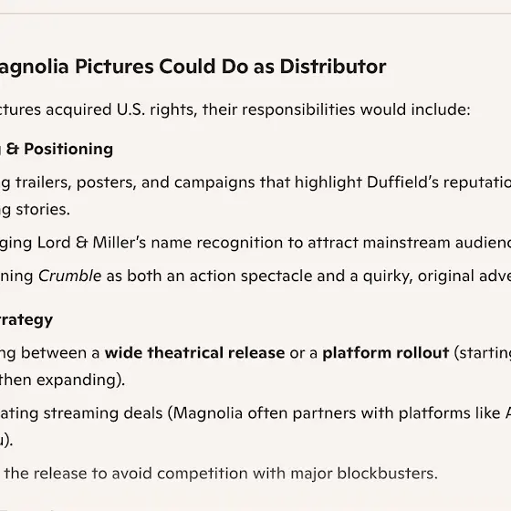 Hopefully this will be the first collaboration between Magnolia Pictures and Phil Lord & Chris Miller if Magnolia Pictures did this