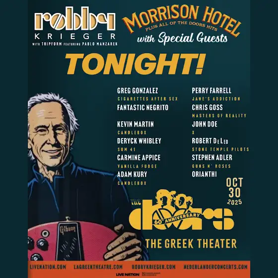 With an intoxicating, genre-blending sound, provocative and uncompromising songs, and the mesmerizing power of singer Jim Morrison’s poetry and presence, The Doors had a transformative impact not only on popular music but on popular culture.