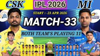 IPL 2026 Match-33 Chennai vs Mumbai Match Details & Both Team's Final Playing11🚨MI vs CSK Playing 11