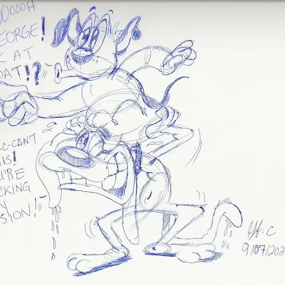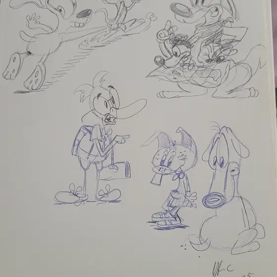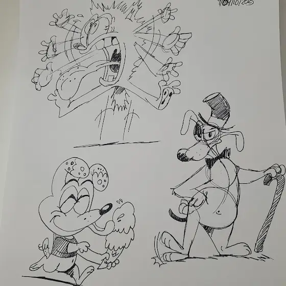 September Silliness featuring Nello, my mellow yellow/blue lion, a couple of characters belonging to a really good friend/cartooning buddy of mine, Hokey Wolf and Ding-a-Ling,another doodle sheet featuring my kangaroo crew; Boomer,Rangler and Bushel, and one containing a line from "Strong Arms of The Ma" from #thesimpsons