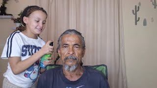 9 year old girl does grandmother's makeup and hair //Relaxing combing and makeup application #makeup