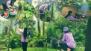 quaet life in a mountain village.harvest vegetables. cook a simple lunch menu.Indonesian countryside