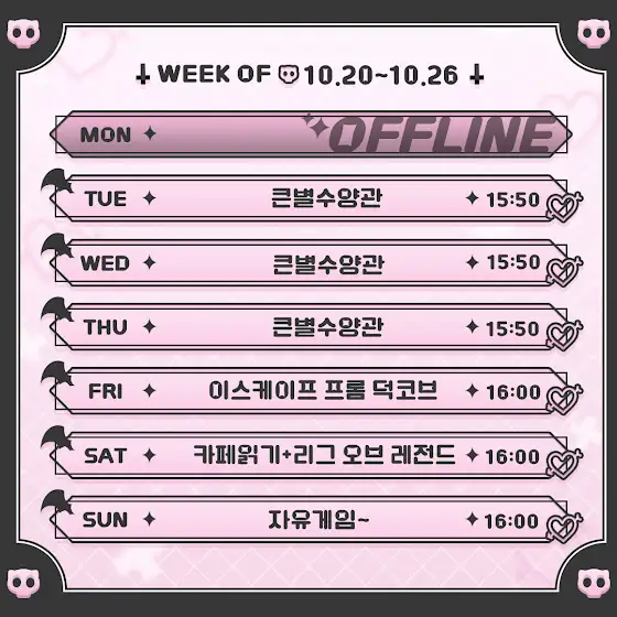😈25.10.20~25.10.26🩹✦ 치카 스케쥴표 ✦ chzzk.me/Llvsd