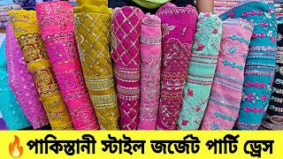 কাশ্মীরি জর্জেটের উপর পাকিস্তানি স্টাইলে কাজ করা ড্রেস কিনুন অর্ধেক দামে-luxury Pakistan party dress
