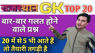 Rajasthan GK|TOP 20 QUESTIONS|If you get 5 out of 20 then your preparation is good|PATWARI GRAM S...