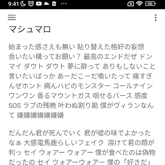 マシュマロ 歌詞