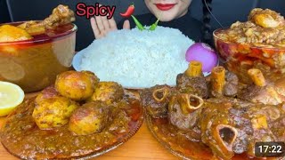 #mukbang Spicy Mutton Cury 🔥 Spicy Egg Cury 🔥 Spicy Chicken Cury 🤤 Hot & Spicy Mutton Fat Cury 🔥 Ric