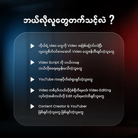 အထူးသဖြင့် Content Creator လုပ်ချင်တဲ့သူတွေနဲ့