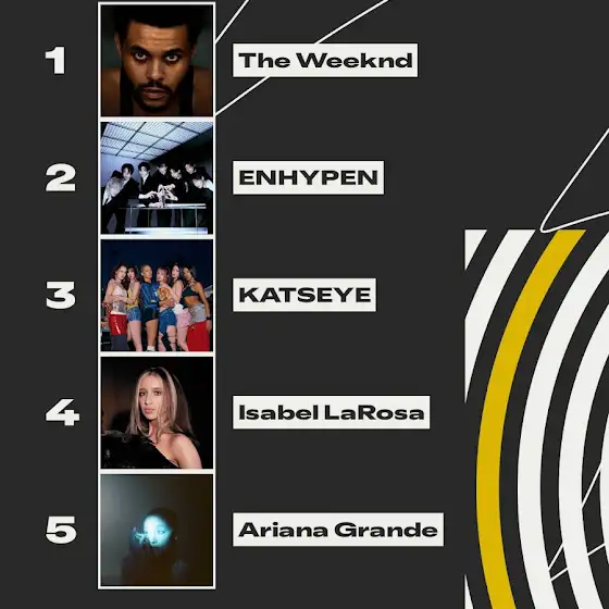 My top artist from Spotify even though I don't really use Spotify to listen to songs