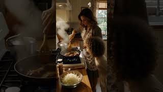 A cat is dressed in a beautiful dress and eating foodwhile another big cat stands and dances.#shorts