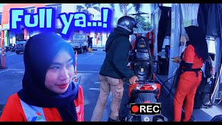 Motovlog Kampung IAsk the gas station attendant to purchase petrol using the Pertalite-Mobil QR CODE