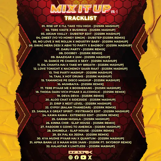 Step into the world of O2SRK, A dynamic duo Djs & multigenre producers who once served as the official Tour DJ and Music Producer for Manj Muzik (RDB). With over 12 years of experience in music production, O2SRK has worked with some of the biggest names in the industry, including Manj Muzik, Raftaar, Navv Inder, Sean Kingston, Arijit Singh, Sachet Tandon, Harbi Sahar, Rob C, Nindy Kaur, Amy Jackson, A-Kay, DJ NYK, DJ Shadow, Dhrriti Saharan, Sachet-Parampara, and many more. Their unmatched creativity comes to life in over 1,000 remixes, each a testament to their mastery of sound. With official releases on powerhouse labels like T-Series, Zee Music, and Saregama, O2SRK is reshaping the future of music with their innovative beats and boundless talent.