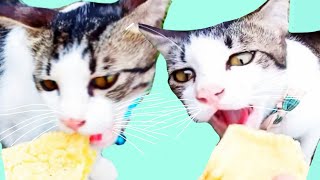 Feeding my cat with my snack nyam nyam