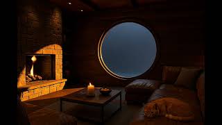 1 Hour of Cozy Winter Cabin Ambience ❄️ Fireplace, Snowfall & Sleeping Cat | Relaxing ASMR Loop