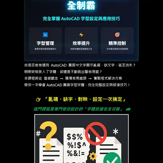 💡 不再怕跨電腦、跨平台開啟 DWG 出現亂碼!學會這套完整流程,你的圖面文字永遠「一致、清晰、專業」。