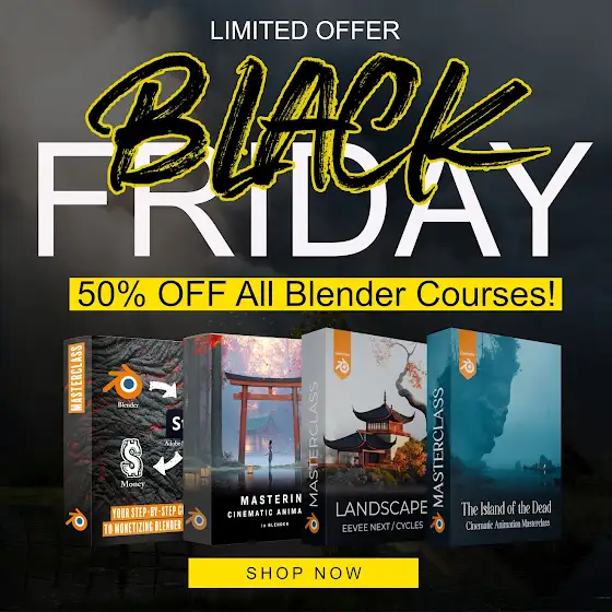 Just dropped the biggest discount I’ve ever done 50% off the whole shop. Especially Blender Masterclasses - all of them half price right now: