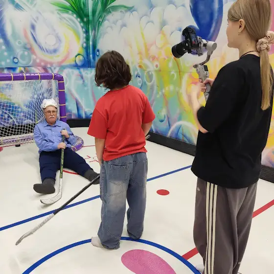 Мы сегодня гоняли дедушку Юру по парку развлечений, а ещё снимали в классном магазине bafi.