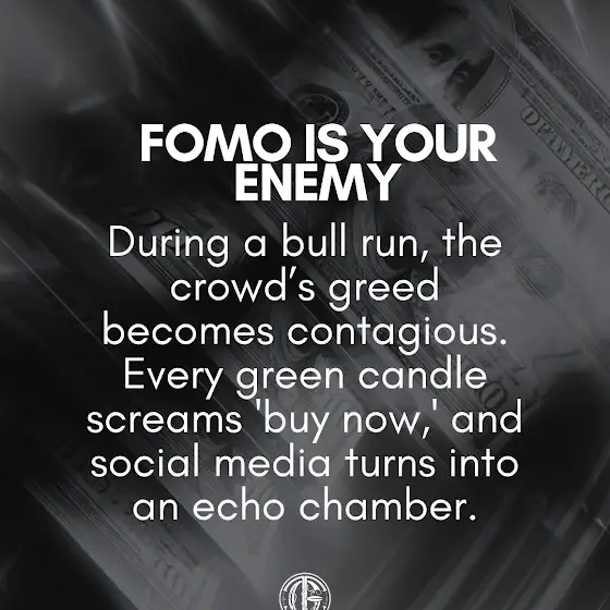 FOMO IS YOUR ENEMY — During a bull run, the crowd’s greed becomes contagious. Every green candle screams 'buy now,' and social media turns into an echo chamber. Smart money doesn’t chase—they position before the herd even wakes up.
