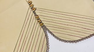 Making Elegant Poncha design using fabric Patti and simple lace - The Latest Design -Trouser designs
