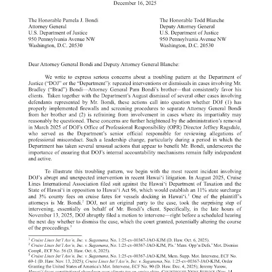 Attorney General Pam Bondi’s brother and his corporate clients keep benefitting from unusually favorable outcomes on cases before the Justice Department.