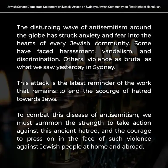 Jewish Senate Democrats Statement on Deadly Attack on Sydney’s Jewish Community on First Night of Hanukkah