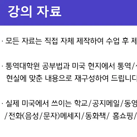 - 영어가 늘지않는 문제점을 파악하고, 해결방법을 찾고싶으신 분들에게 혼자서도 공부 할 수 있도록 가이드라인을 잡아드립니다.