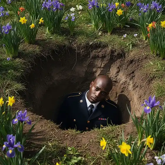 It’s as if the person in question had been planning a funeral or something similar. However, they unexpectedly ended up in the pit that they dug for whoever.