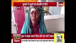 #@ मामूली विवाद ने लिया हिंसक रूप, भीमपुरी में बुज़ुर्ग पर युवकों का हमला#@ गाली-गलौज का विरोध करते।
