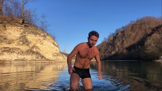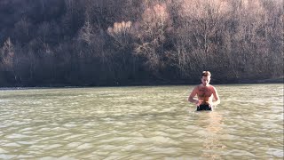 Hardening in a cold mountain river 2 degre Celsius Walruses and preparation for 30 days bathing 8.11