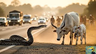The rescue of the white cow and her calf from the power of the Burmese python