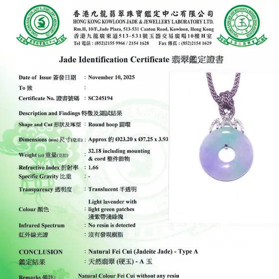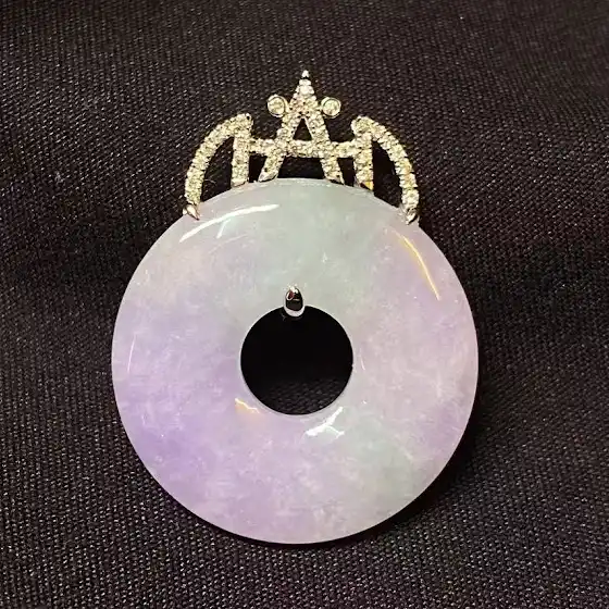 翡翠擁有豐富的歷史和文化意義,在中國文化中被視為財富、地位和繁榮的象徵。「平安扣」又稱懷古、懷玉或環佩,是一種圓形中間挖孔的傳統玉飾,外圓內圓,寓意「圓滿」、「中正安穩」。從古至今都被視為可護身、祈福的吉祥之物。