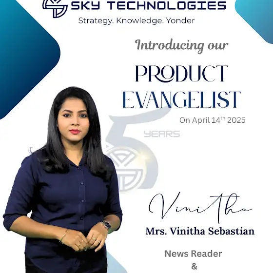 🚀 We’re thrilled to welcome Mrs. Vinitha Sebastian as our new Product Evangelist at SKY Technologies.
