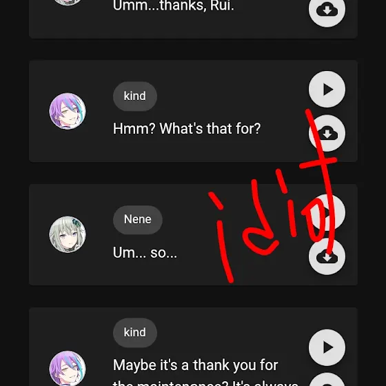 I can't fucking take it, i see an image of a random object posted, and then i see it, fucking see it, oh that kind of reminds me of ruinene! it started as, that's cool. That's a funny reference, but it kept going. I'd see an Christmas tree that reminds me of ruinene, i'd see an motion graphics with green and purple colour scheme, reminds me of ruinene, i'd go outside to touch grass, but the plants remind me of nene kusanagi but nene kusanagi is also a reference to ruinene! ITS TORMENT PSYCHOLOGICAL HORROR!! I am being conditioned to laugh maniacally every time i see a fucking purple green object, I CAN'T LIVE LIKE THIS! I CAN'T I CAN'T I CAN'T I CAN'T I CAN'T AND DONT GET ME FUCKING STARTED ON THE WORDS! I will never be able to hear the word STORIES without thinking of ruinene, i will never be able to hear the words rainbow without thinking of NIJIIRO STORIES! Google tell me that there is a rainbow outside today and i fucking think... about... RUINENE🥺 I COULD WATCH SOMEONE I LOVE JUMP OFF A FUCKING BUILDING, AND ALL I WOULD BE ABLE TO SAY IS ✨Hehe, now that i am doing things alone....✨ I CAN'T LIVE ANYMORE, RUINENE HAS DESTROYED MY FUCKING LIFE, I WANT TO ERASE MYSELF FROM THIS PLANE OF EXISTENCE!! MAKE IT STOP!!!!!!
