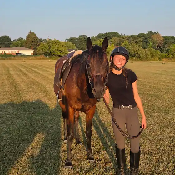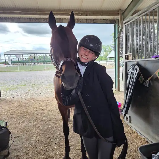 My name is Kate 😁. I have been riding for 9 years. I own 2 horses at a private barn, named Simon🇺🇸 and Midge🪻 the newest addition (also self care barn). With the barn I own at, we have one show section called painted shamrock pach☘️✨️.