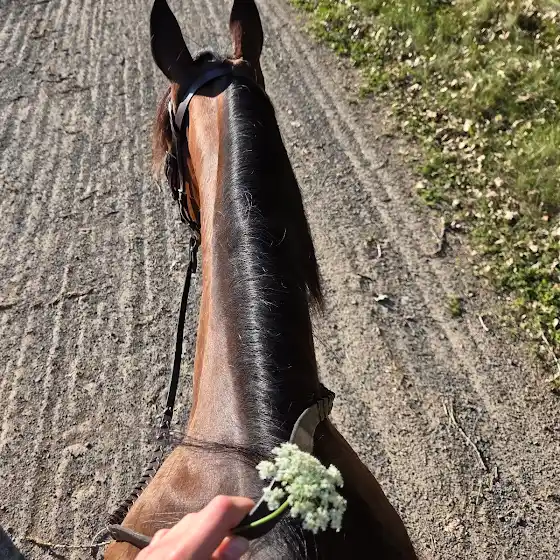 She is recitly adopted and has been broke for 3 years. She is very fun to ride and has a lot of growth ✨️. I am so exited to grow with her.