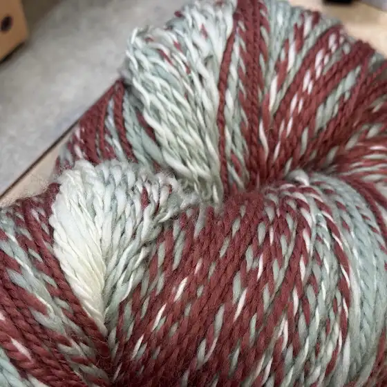 One hank of hand dyed , blended, and spun by me.