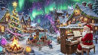 Playing Piano Santa Winter Fireplace Crackling Sounds with Snow for Sleep, Study and Calm Atmosphere