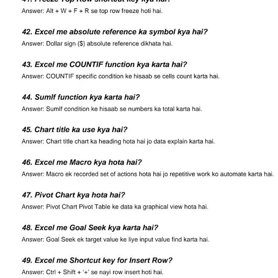 Excel question and answer