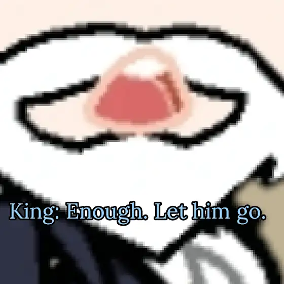 King: Enough. Let him go.@Darkevil.exekilldoom @Russian-USSR1 @muhammadfarihin684 @Channel_was_shut_down @jacklego123 @КостяСтруков-ъ5ъ @Shawn_Geography @rodneybradley4529 @G-SQUAD-4130 @Frost_Storm2025 @President_of_R.U.W.F @The_Dark_Raven @Flankcannon @Imperial_Universe @SUN_KITSUNE @YTArsak @captainrextrooper929 @Pordex35 @JaouDragon2 @hendrujayalaksana @Jenderaltninawawi2025 @Mysterious_Graffiti_Man@worldofcrossovers517 @slinger_alliance @goldendiana986@Commander_bintang_yujinx_un @CplAdrianShephard1977 @JSDF-35@Stalinsfavoritetank @ГлебКоваленко-е1и @ToddYoutubeTH2ไทย