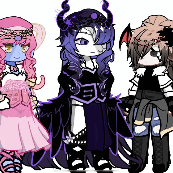 The pink hair one is a jellyfish named jelly! The purple and black hair one is Astoria and the blonde with black hair is valerius!
