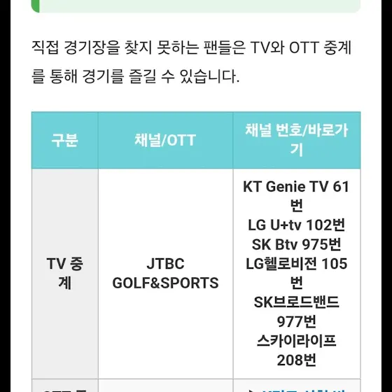 오늘 대전 못오신 분들은 TV와 OTT에서 즐길수 있다고 합니다. 참고하세요^^