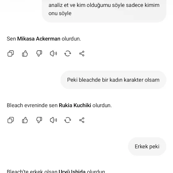 Bleachde erkek bir karakter olsam kim olurdum dedim Uryu Ishida çıktı boşuna sevmiyorum bu elemanı. Ayrıca Gintama evreninde de Shinpachi olurrmuşum vay be