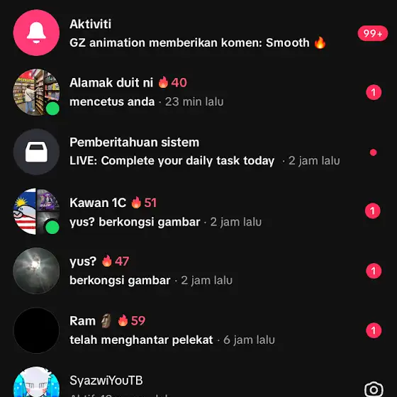 First time dapat notif 99+ dalam masa 5 jam (kat tiktok)