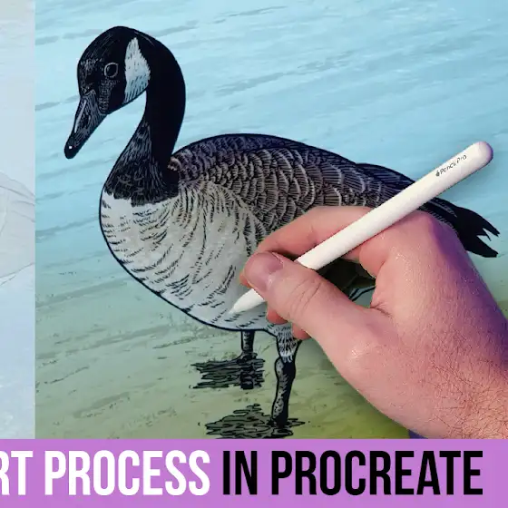 Join on Patron or Gumroad to access a library of Digital Art resources. New this month is a longer version of my Canadian Goose painting in Procreate. You can also get a promo code to save an additional $50 off my new Rebelle 8 course.