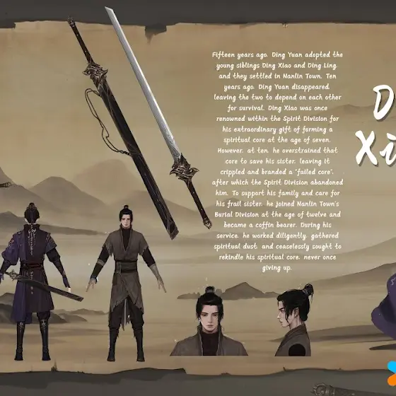 At the age of seven, he bonded with a Spirit Embryo and revealed extraordinary talent, earning a special appointment to Nanlin Town's Spirit Division. Living only with his younger sister Ding Ling, he sacrificed his own spirit powers at the age of ten to save her, becoming a coffin bearer of the Burial Division. Now, he sets out once more on the path to awaken his spirit powers.