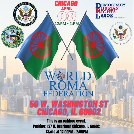 Reminder that TOMORROW is International Romani Day and also the day of our second annual Romani flag raising in downtown Chicago! The details are attached below, make sure to come out and show your support, bring your families, it will be a wonderful event, you might even see your favorite Romani youtuber there! More details at www.wrf-gov.org/event-details-registration/roma-fl…