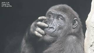 Gorilla D'jeeco family 覓食 早餐 樹枝 / Iriki 拒絕餵奶。Ringo 幫 dad D'jeeco& mom Iriki 理毛 2026-2-26 10:08-11:16