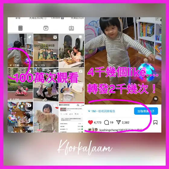 呀媽奮鬥兩年。。最多嗰條片都係幾十萬次觀看。。但kalaam 小姐3歲,是但轉咗兩個圈就一百萬次觀看🥴🥴🥴